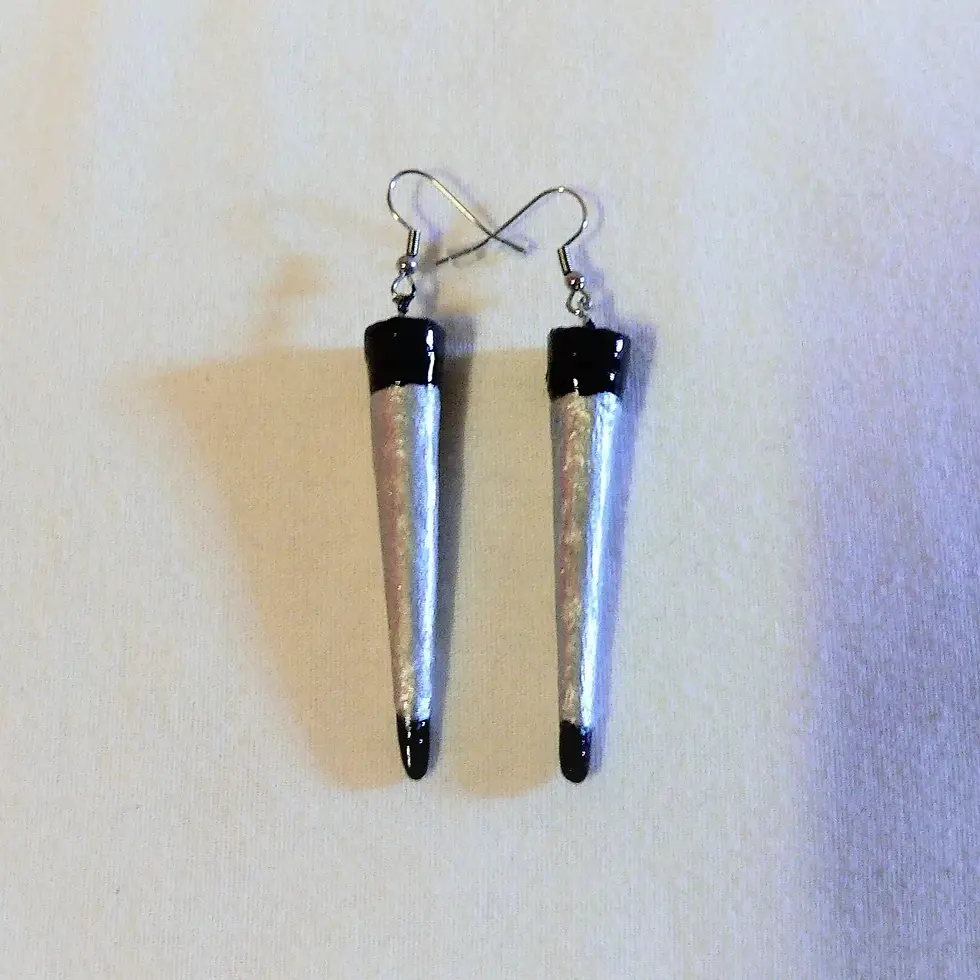 Earrings, ceramic conical tip, modern style, black and silver