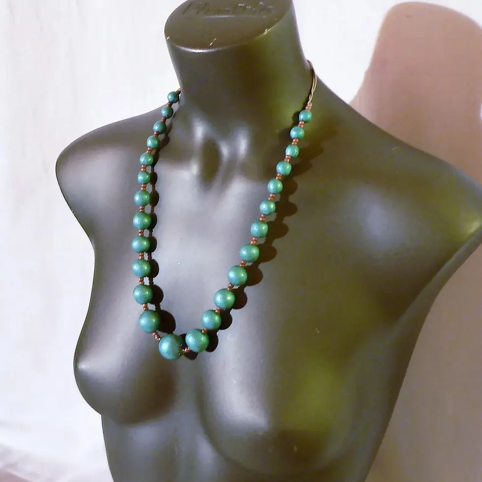 Women's jewelry: Ceramic pearl necklace, deep green color