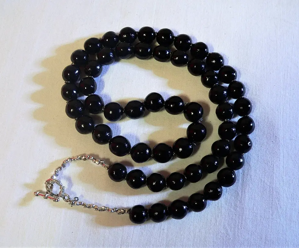 Long necklace, ceramic beads, Abyssal Black color