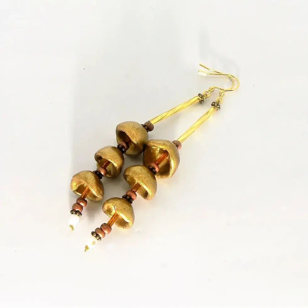 Jewelery: enamelled bell earrings, amber and black color